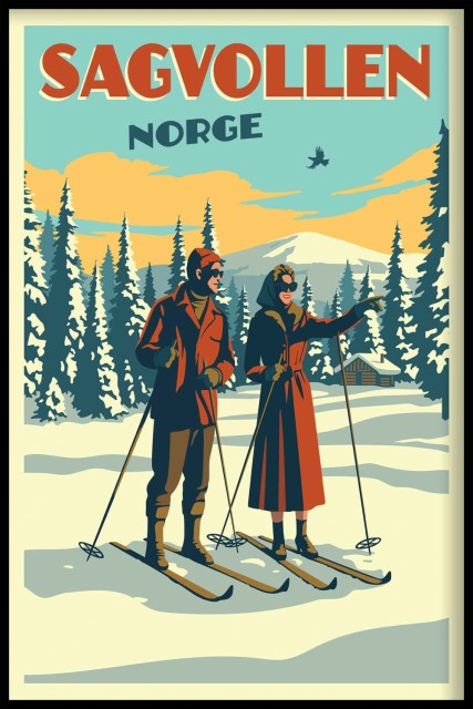 Opplev vinterens ro og klassiske norske skitradisjoner med denne retro-inspirerte Sagvollen-posteren. Illustrasjonen kombinerer varme farger, slående silhuetter og den tidløse stemningen av en klar vinterdag i fjellet. Den passer perfekt i hytte, peisestue eller hjemme hos alle som elsker norsk natur, historie og nostalgisk design.
