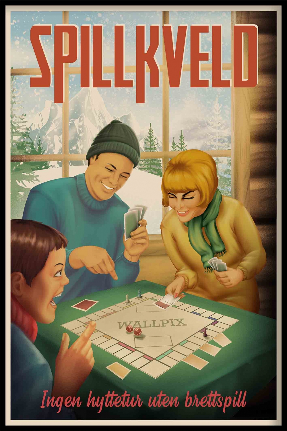 skigåere i løypa, gul himmel , PERSONLIG HYTTEPOSTER , VELG DIN EGEN OVERSKRIFT