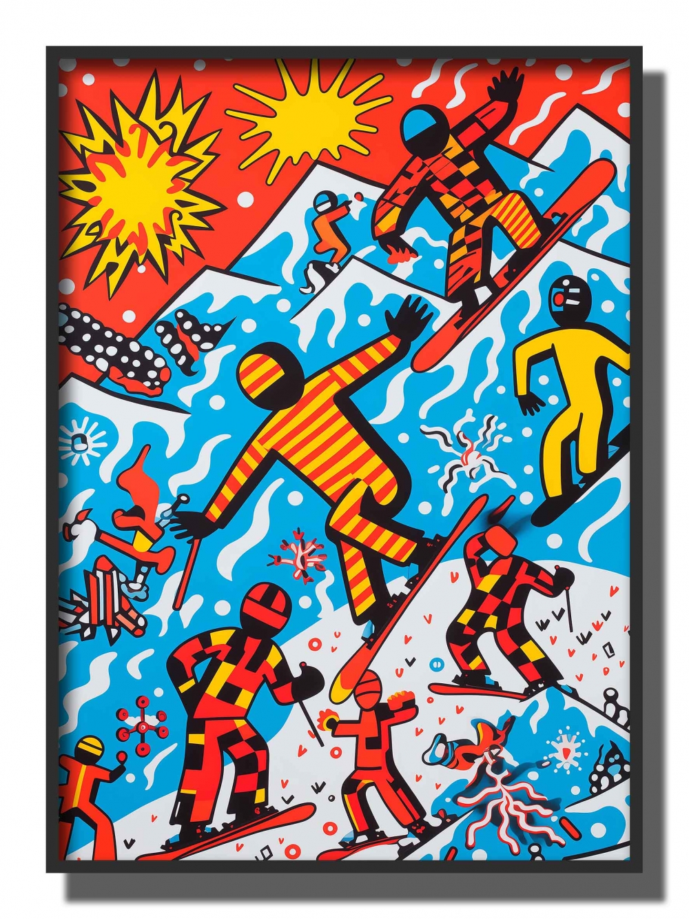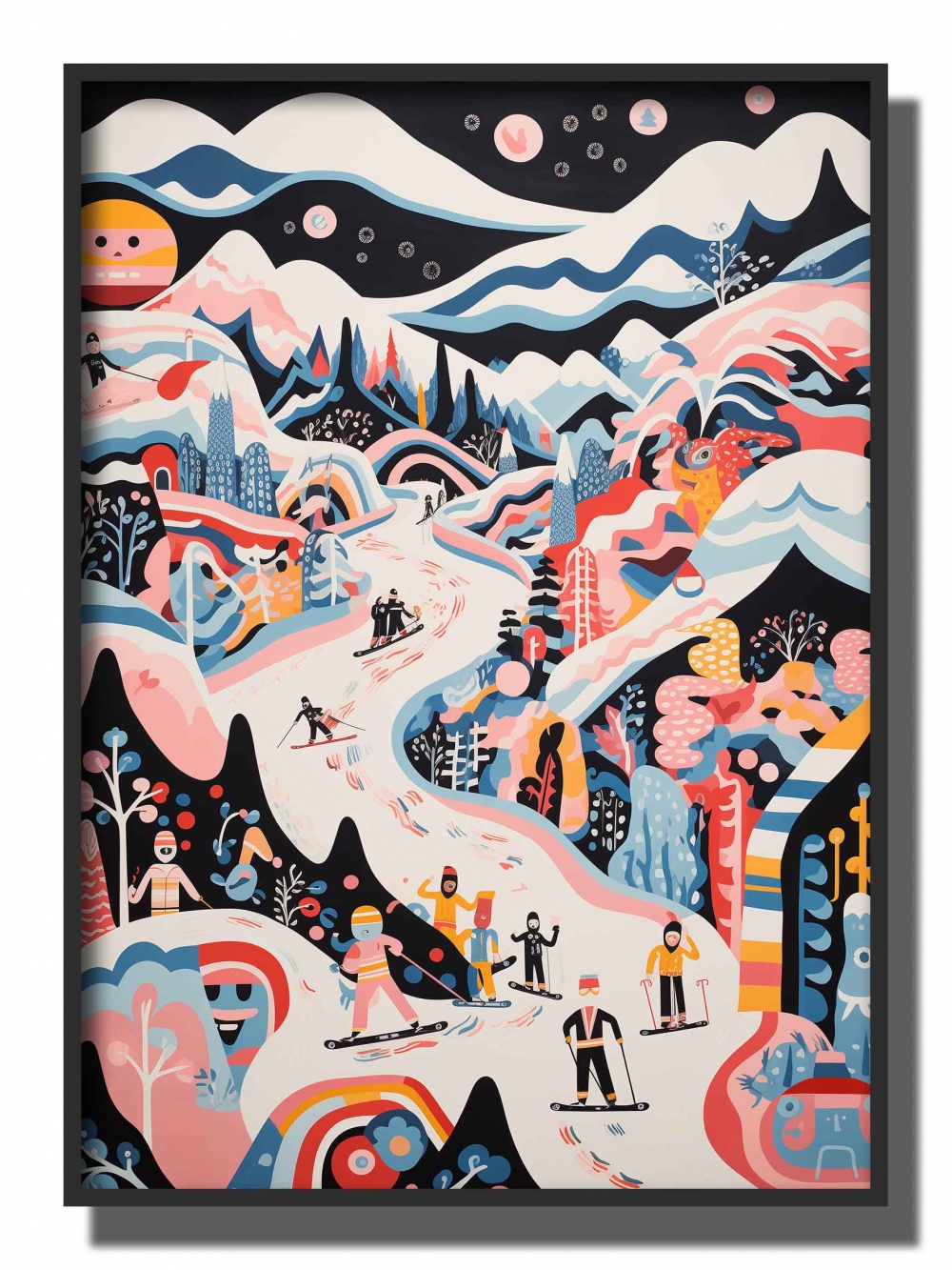 skigåere i løypa, gul himmel , PERSONLIG HYTTEPOSTER , VELG DIN EGEN OVERSKRIFT