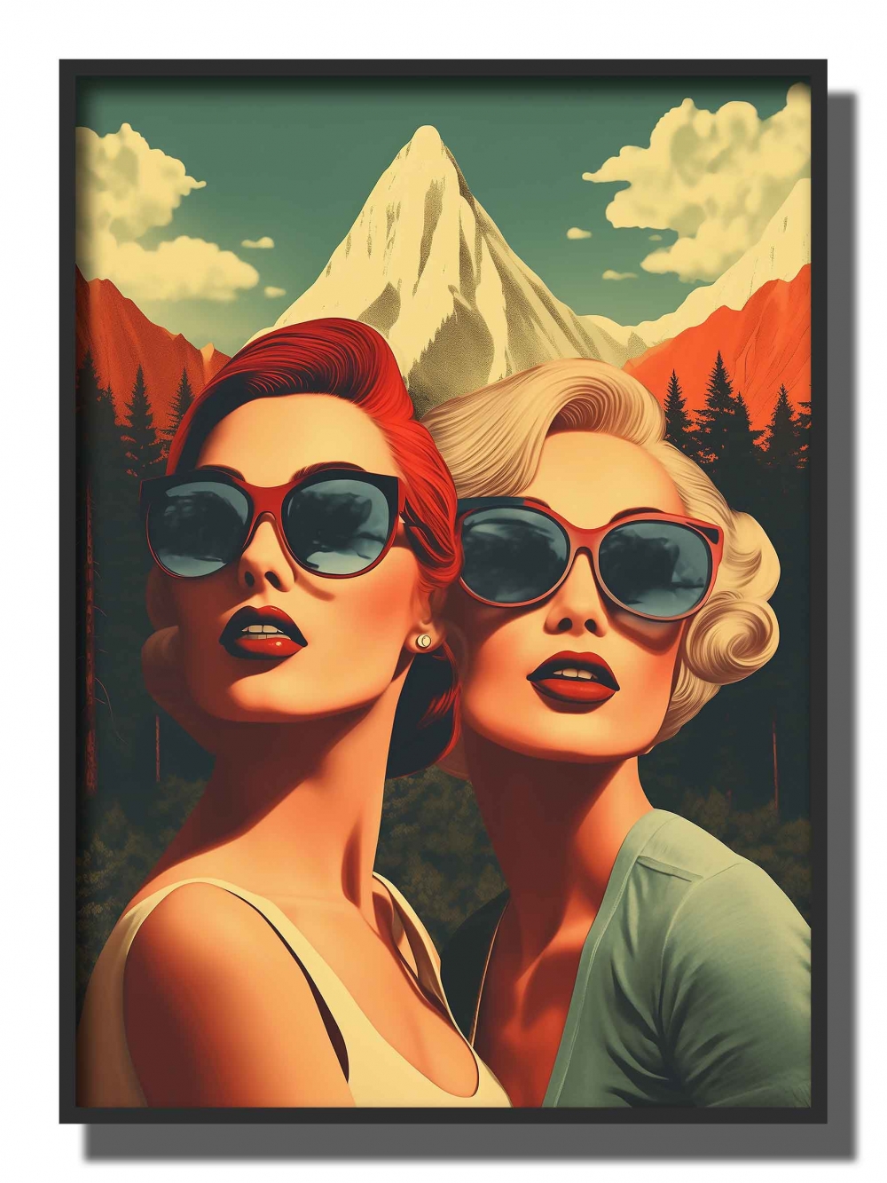 DIGITALMALERI TO DAMER , BLONDE , SOLBRILLER , FJELL , HAIRBUN