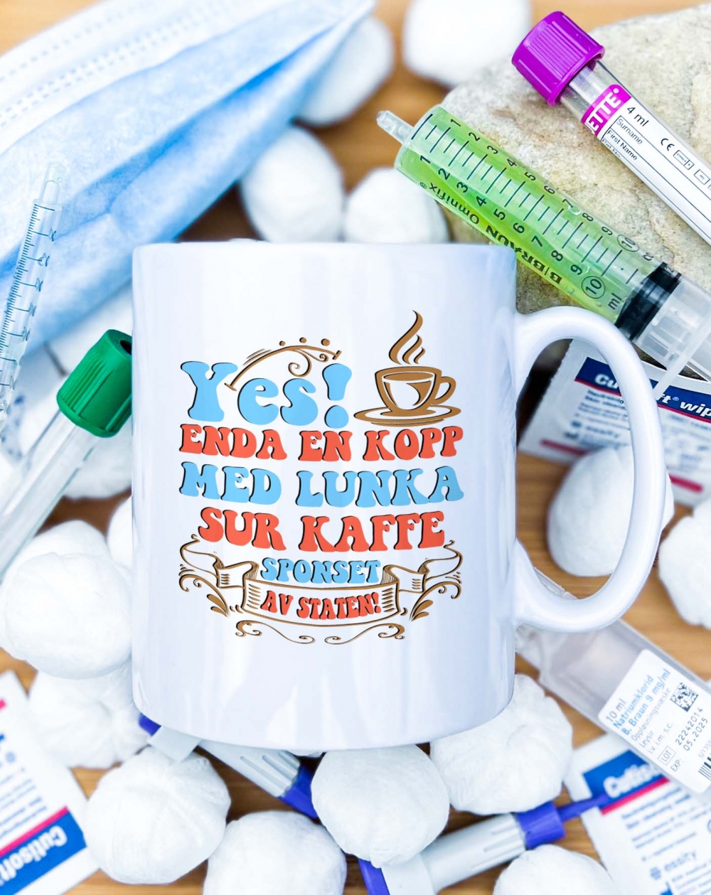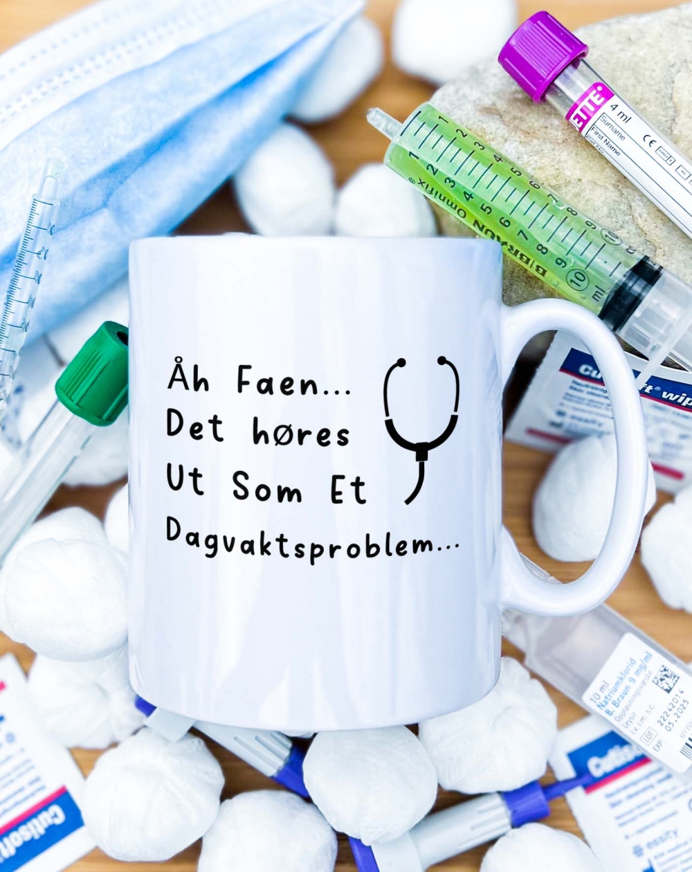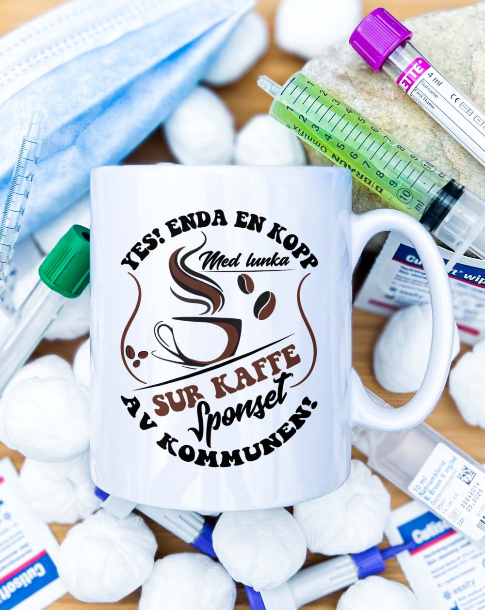Opplev latter og fellesskap med våre morsomme kaffekopper for helsepersonell. Laget i Norge for å bringe glede til hverdagen og bygge en følelse av samhold og stolthet på arbeidsplassen