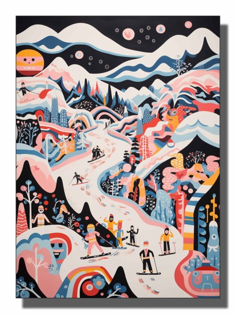 Gi hytta et unikt og nostalgisk preg med Wallpix-posteren. Utforsk moderne tolkninger av fjell- og skitemaer som gir en tidløs atmosfære til ditt fjellparadis.