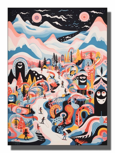 Gi hytta et unikt og nostalgisk preg med Wallpix-posteren. Utforsk moderne tolkninger av fjell- og skitemaer som gir en tidløs atmosfære til ditt fjellparadis.