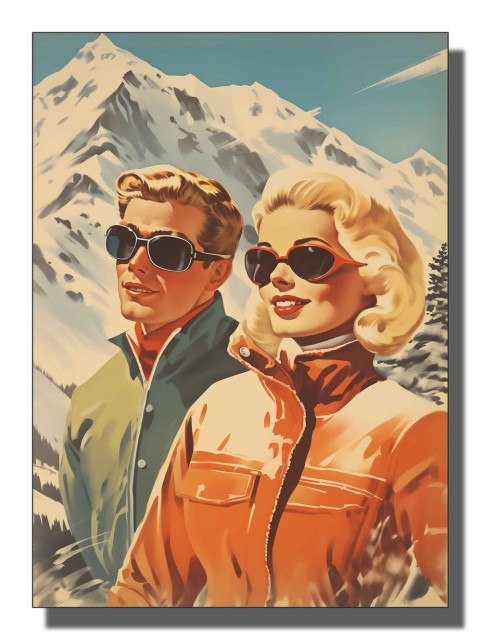 Gi hytta et unikt og nostalgisk preg med Wallpix-posteren. Utforsk moderne tolkninger av fjell- og skitemaer som gir en tidløs atmosfære til ditt fjellparadis.