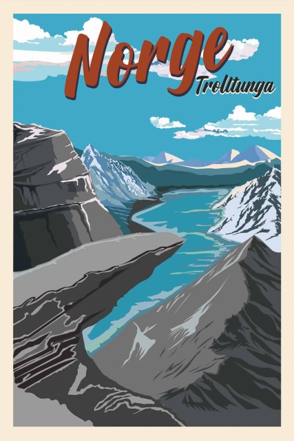 Trolltunga, norge retro , blåtoner, Hyttekopp