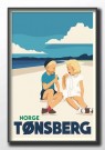 Tønsberg , Ringshaugstranda, to barn spiser is
