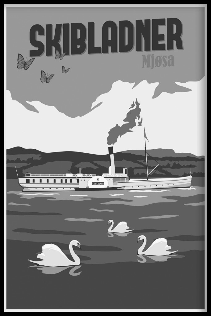 Bli med på en reise til fortiden med vår nydelige retro hytteposter, som skildrer den vakre Mjøsa og den legendariske Skibladner - den hvite svane. Denne unike illustrasjonen vil vekke lokalpatriotismen i deg og fylle rommet med nostalgi og sjarm.