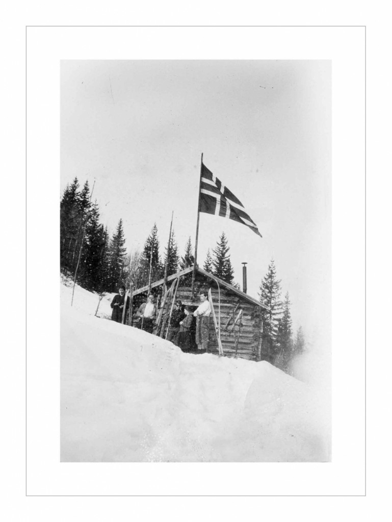 Selv om fotograf, årstall og sted er ukjent, gir motivet sterke assosiasjoner til norsk friluftsliv tidlig på 1900-tallet. Bildet viser en tid hvor hyttelivet var enkelt, og naturen var en sentral del av hverdagen. Skiene, klærne og hytta antyder en periode da nordmenn for alvor omfavnet friluftslivet som en nasjonal identitet.