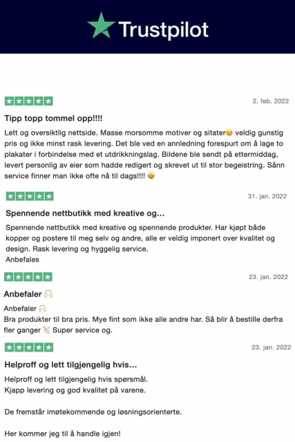 Vi jobber hardt for at du skal få dine produkter så fort som mulig. Vårt mål er å sende din pakke senest dagen etter bestilling er mottatt.